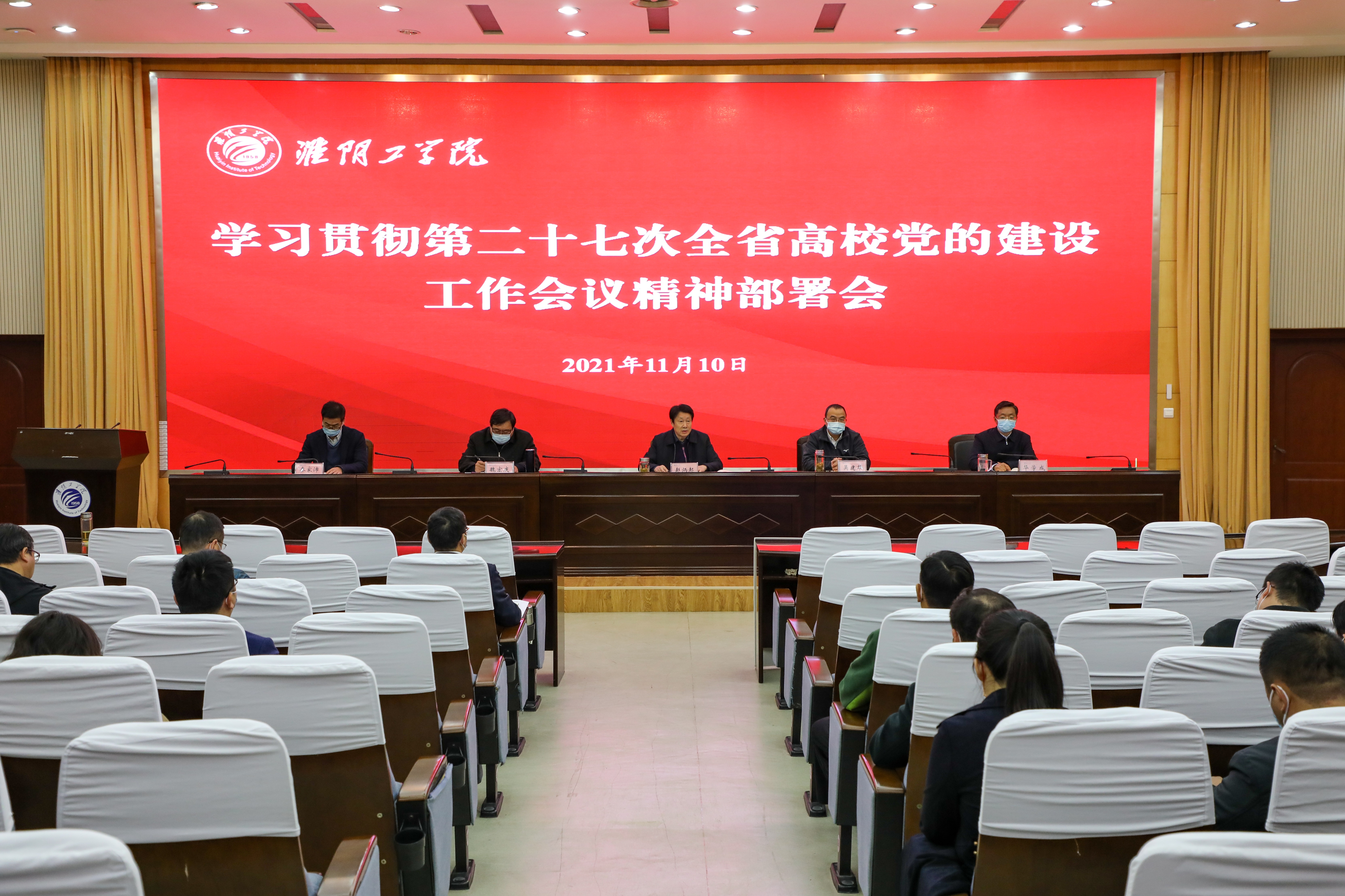 就学习贯彻全国、全省高校党的建设工作会议精神,认真落实省委常委、宣传部部长、省委教育工作领导小组组长张爱军讲话精神,学习贯彻《中国共产党普通高等学校基层组织工作条例》,切实做好当前和今后一个时期学校党的建设工作,赵炳起提出四点要求。一要突出政治统领,加强党对学校工作的全面领导。充分发挥党委总揽全局、协调各方的领导核心作用,认真落实“第一议题”制度,深入学习领会习近平总书记关于教育的重要论述和重要指示批示精神,坚持社会主义办学方向,全面落实立德树人根本任务,全面落实党委领导下的校长负责制,把党的领导贯穿到把握学校发展方向、制定重大决策部署、推进学校高质量发展各方面全过程。二要压实政治责任,推动党建与事业发展深度融合。学习贯彻新时代党的建设总要求和新时代党的组织路线,着力健全党建工作体系,压实党建工作政治责任,增强基层党组织政治功能,推动基层党建工作创新,坚持党建与业务同谋划、同部署、同落实,以一流党建引领学校事业高质量发展。三要坚持立德树人,推动新时代思政工作守正创新。深入学习贯彻习近平总书记在庆祝中国共产党成立100周年大会上的重要讲话精神和党的十九届六中全会精神,持续深入推进党史学习教育,扎实有效开展“两在两同”建新功行动,推动新时代思想政治工作守正创新,坚持用习近平新时代中国特色社会主义思想铸魂育人。深化思政课程与课程思政协同育人,完善“十大”育人体系,构建“三全”育人工作长效机制。坚持党管意识形态原则,严格落实意识形态工作责任制,维护校园政治稳定。四要加强风险防控,确保学校稳定和师生健康安全。认真学习贯彻习近平总书记关于疫情防控和安全生产的一系列重要指示批示精神,树牢安全发展理念,认真贯彻属地疫情防控政策要求,把疫情防控摆在突出位置,全面细致落实学校防疫条件和常态化防控措施。高度关注关心学生身心健康,抓好重点领域、场所、环节安全隐患排查治理,推进平安校园建设。