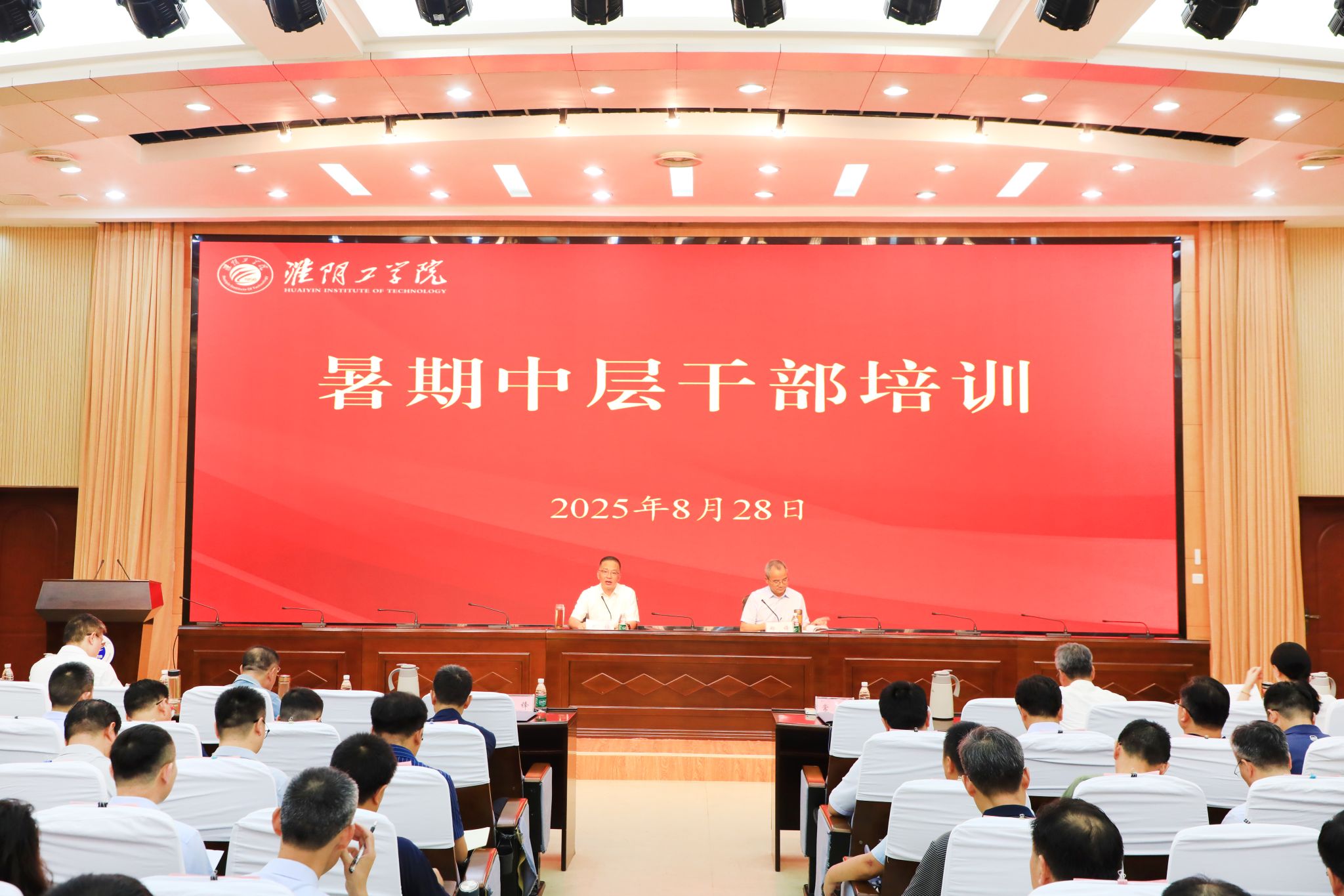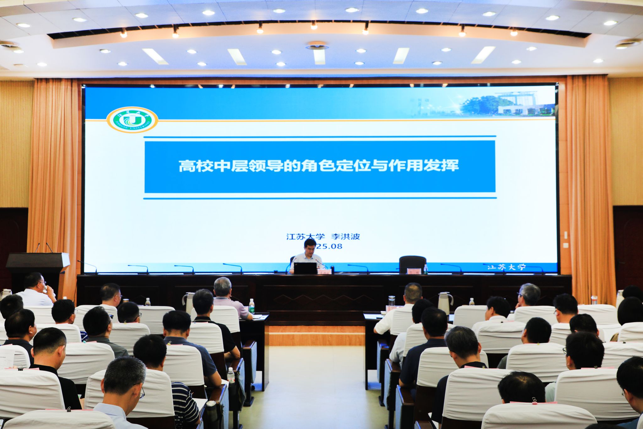 8月28日至29日,我校于枚乘路校区翔宇楼二楼报告厅开展2025年暑期中层干部培训。本次培训以“强化党性修养 提高履职能力”为主题。校党委书记常绿作开班动员讲话。党委副书记、校长郑锋主持开班式。
