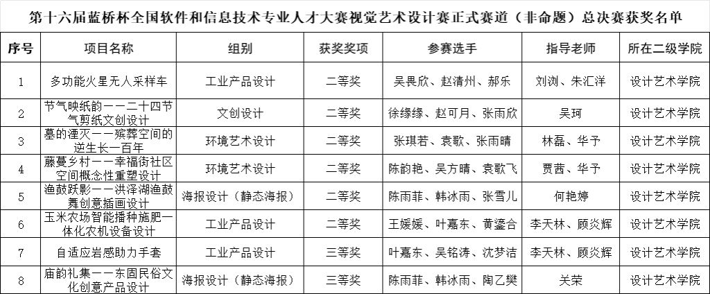 近日,第十六届蓝桥杯全国软件和信息技术专业人才大赛全国总决赛获奖名单揭晓。我校计算机与软件工程学院刘俊轶、经玮乐、陈海洋团队凭借作品《疲劳驾驶检测与分级预警系统》荣获数字科技创新赛一等奖,创我校在蓝桥杯软件类竞赛最好成绩。指导教师金春花、张金鑫、寇海洲获评“优秀指导教师”。此外,我校学子在软件类、电子类、设计类三个领域获二等奖8项、三等奖14项、优秀奖30项。竞赛成绩充分体现了学校持续实施课程建设、实践实训、服务保障“三大工程”的建设成效。