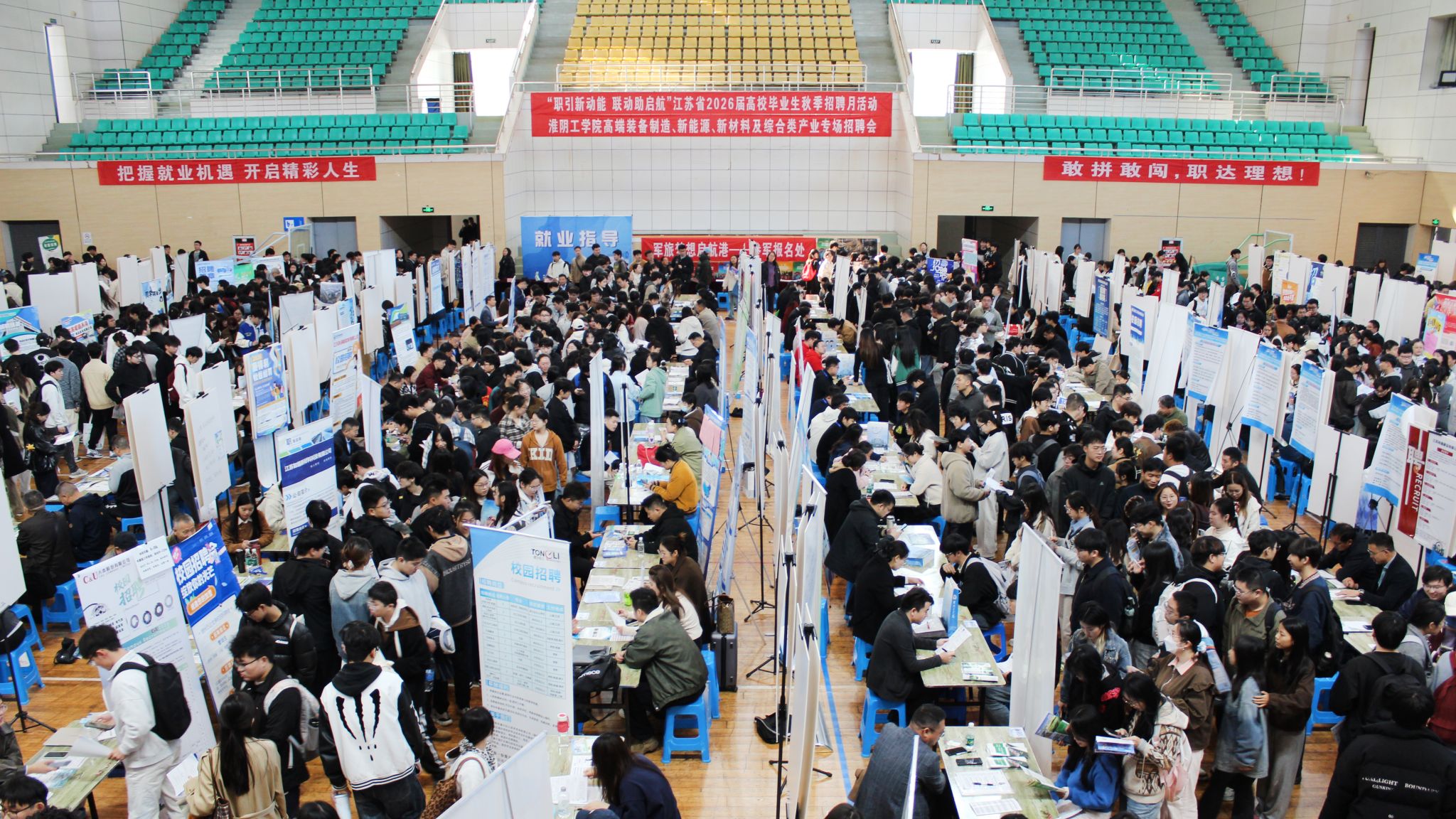 11月5日,“职引新动能 联动助启航”江苏省2026届高校毕业生秋季招聘月暨高端装备制造、新能源、新材料及综合类产业淮阴工学院专场招聘会在枚乘路校区体育馆举行。本次招聘会由省教育厅、省人社厅、省工信厅主办,省高校招生就业指导服务中心、省劳动就业管理中心、省职业介绍中心、淮安市人社局、市工商联和我校共同承办。校长郑锋到现场调研指导工作。