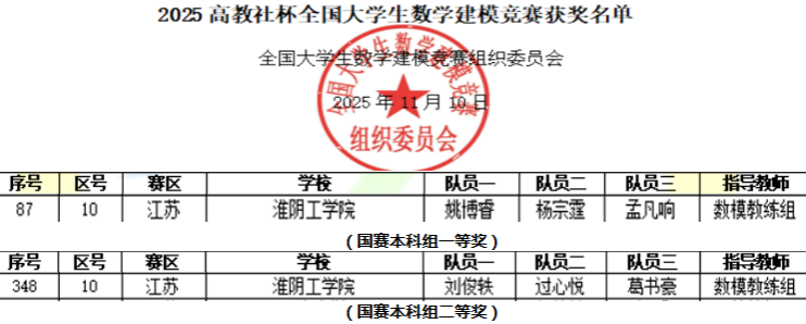 近日,2025年高教社杯全国大学生数学建模竞赛国赛成绩揭晓。我校数理学院数学建模教练组指导的参赛队伍斩获一等奖和二等奖各1项,彰显了我校在数学建模领域的实力与人才培养的成效。