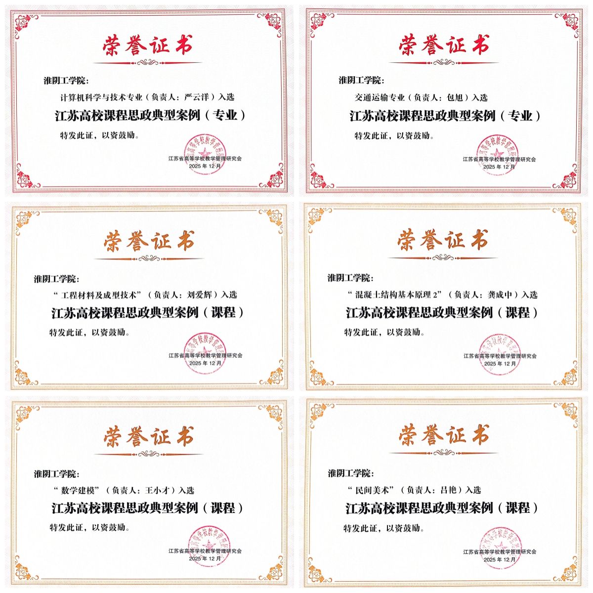 近日,江苏省高等学校教学管理研究会公布了2025年江苏高校课程思政典型案例入选名单。我校申报项目全部入选,其中计算机科学与技术、交通运输2个专业入选江苏高校课程思政典型案例(专业),《工程材料及成型技术》等4门课程入选江苏高校课程思政典型案例(课程)。