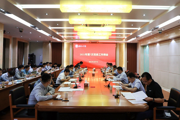 10月7日上午,我校在翔宇楼第一会议室召开2021年第七次党务工作例会,对近期有关工作进行部署和安排。会议由党委副书记、副校长吴建华主持。