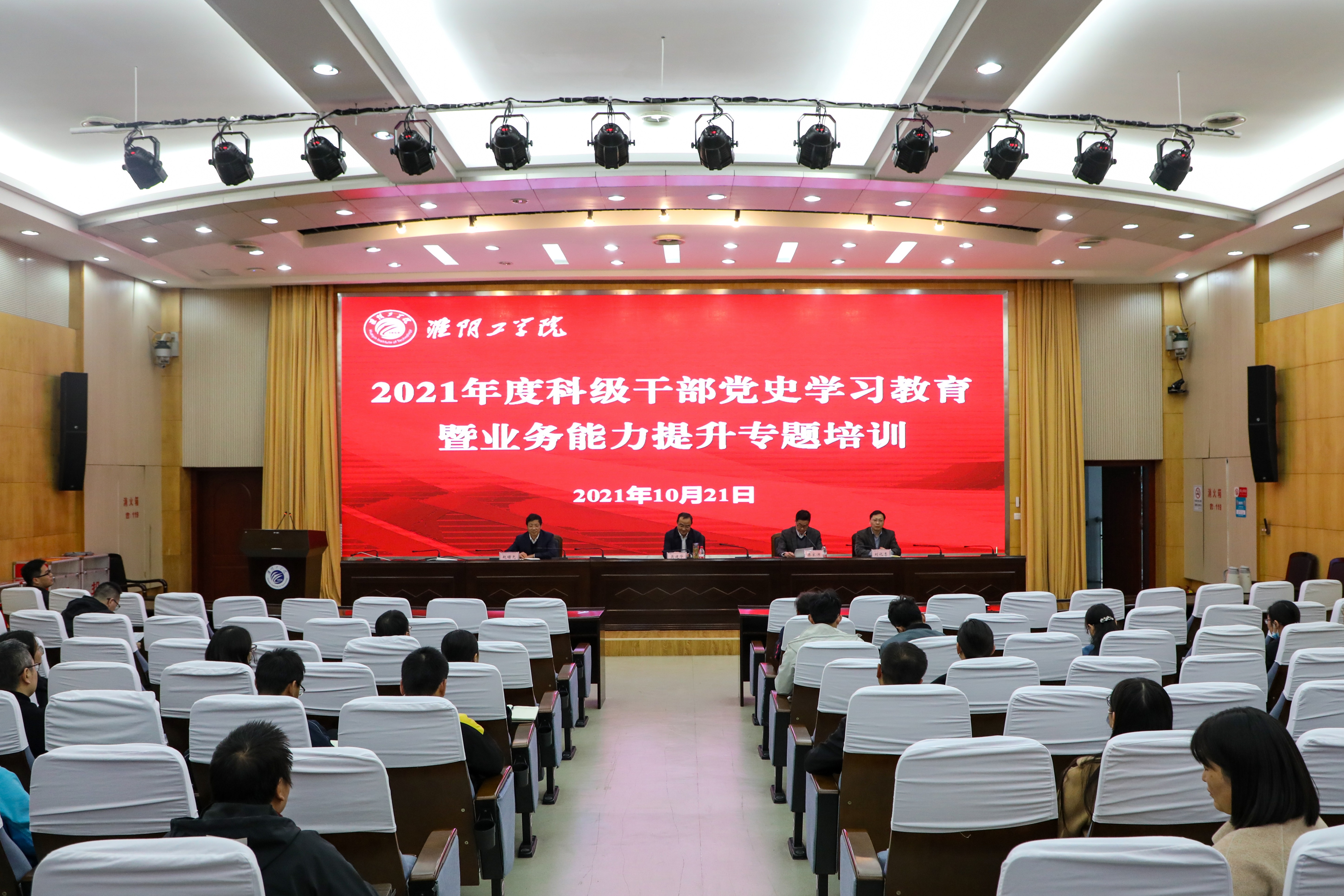 10月21日下午,我校科级干部党史学习教育暨业务能力提升专题培训圆满完成预定内容,在翔宇楼二楼报告厅举行结班仪式。党委副书记、副校长吴建华出席结班仪式并讲话,党委常委、党委组织部、统战部部长秦家沛主持结班仪式。