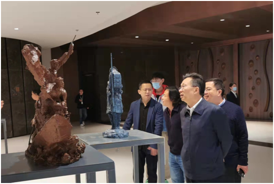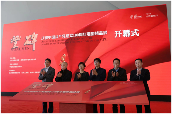 2021江苏雕塑月“丰碑——庆祝中国共产党建党100周年雕塑精品展”由江苏省委宣传部、江苏省文联主办,中国城市雕塑家协会学术指导,江苏省雕协、江苏大剧院、南京大学雕塑艺术研究所承办。全国政协常委、中国美术馆馆长、中国美术家协会副主席吴为山担任本次活动学术艺术总主持。省委宣传部副部长徐宁,省文联主席章剑华,省文投集团党委副书记、省文联副主席叶飚荣,中国美协副主席、省文联副主席、省美协主席周京新,南京市文联党组书记、常务副主席任家龙,南京广播电视集团(台)党委书记、台长、董事长高顺青出席并共同为展览揭幕。徐宁、章剑华分别在开幕式上讲话。开幕式由省文联党组成员、副主席、书记处书记刘旭东主持。