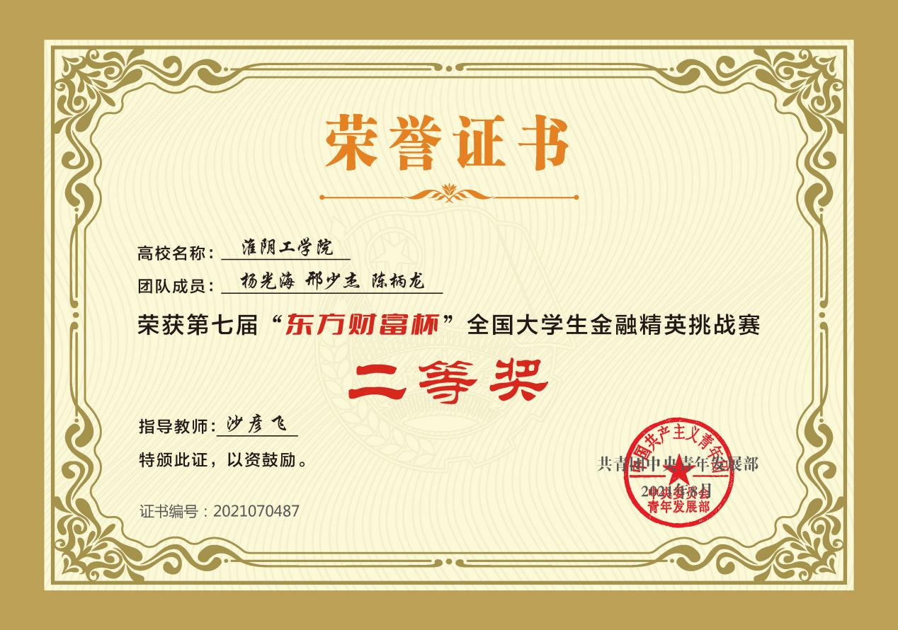 日前,第七届“东方财富杯”全国大学生金融精英挑战赛评选结果出炉。我校沙彦飞老师指导的杨光海、邢少杰、陈柄龙团队获国赛二等奖,裴付伟老师指导的朱晓苗、李瀚康、赵思乐团队获国赛三等奖,另有18支团队获得国赛优秀奖。