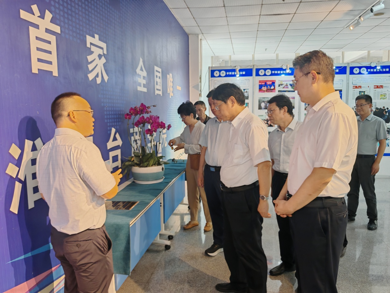 调研组实地察看了台商学院及海峡两岸大学生创新创业成果展,听取了台商学院的基本架构以及在师资融通、产教融合、创新创业和文化交流等方面的工作汇报,深入了解了我校与鹏鼎控股等驻淮台资企业合作情况以及“鹏英班”人才培养机制、校企协同创新、创业项目孵化进展情况。