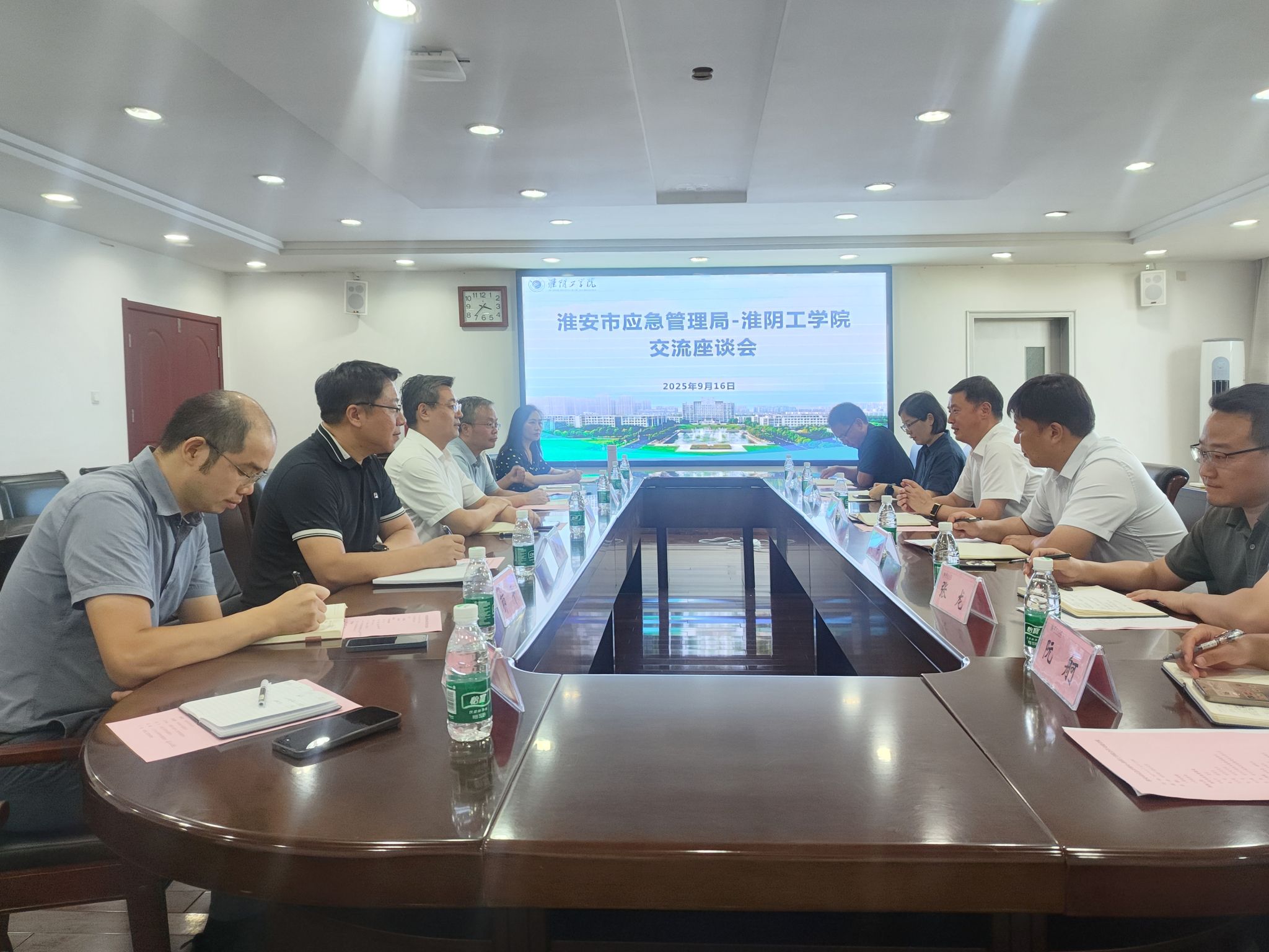 9月16日,淮安市应急管理局党委书记、局长李金平一行来校开展合作交流。校党委常委、副校长张灏出席交流座谈会。