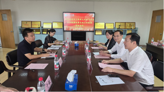 9月19日,长三角新文科教育专业认证联盟理事长、东华大学教授姚卫新到校对新文科建设与专业认证工作进行专题调研与交流。副校长王立彬接待姚卫新一行。