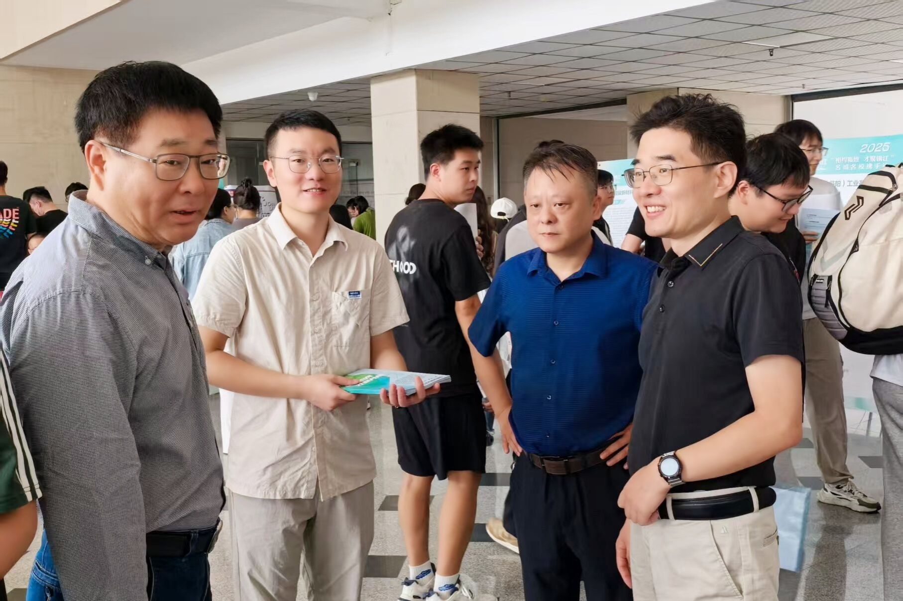 包旭与镇江人社部门领导、用人单位代表亲切交谈,详细了解地方重点产业布局、人才政策以及企业用人需求等情况。他对镇江人社部门和企业长期关心支持我校就业工作表示感谢,希望进一步加深校地、校企交流合作,不断提升就业服务保障和供需对接匹配,实现毕业生高质量就业和企业引才用人“双赢”。