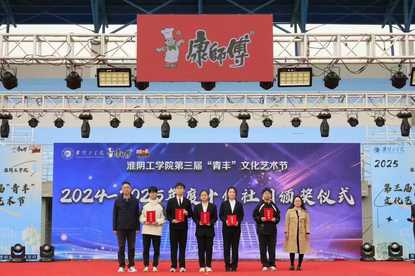 曹苏群、何敬业、王启松、刘玉君为2024-2025年度学校十佳社团颁发荣誉证书。