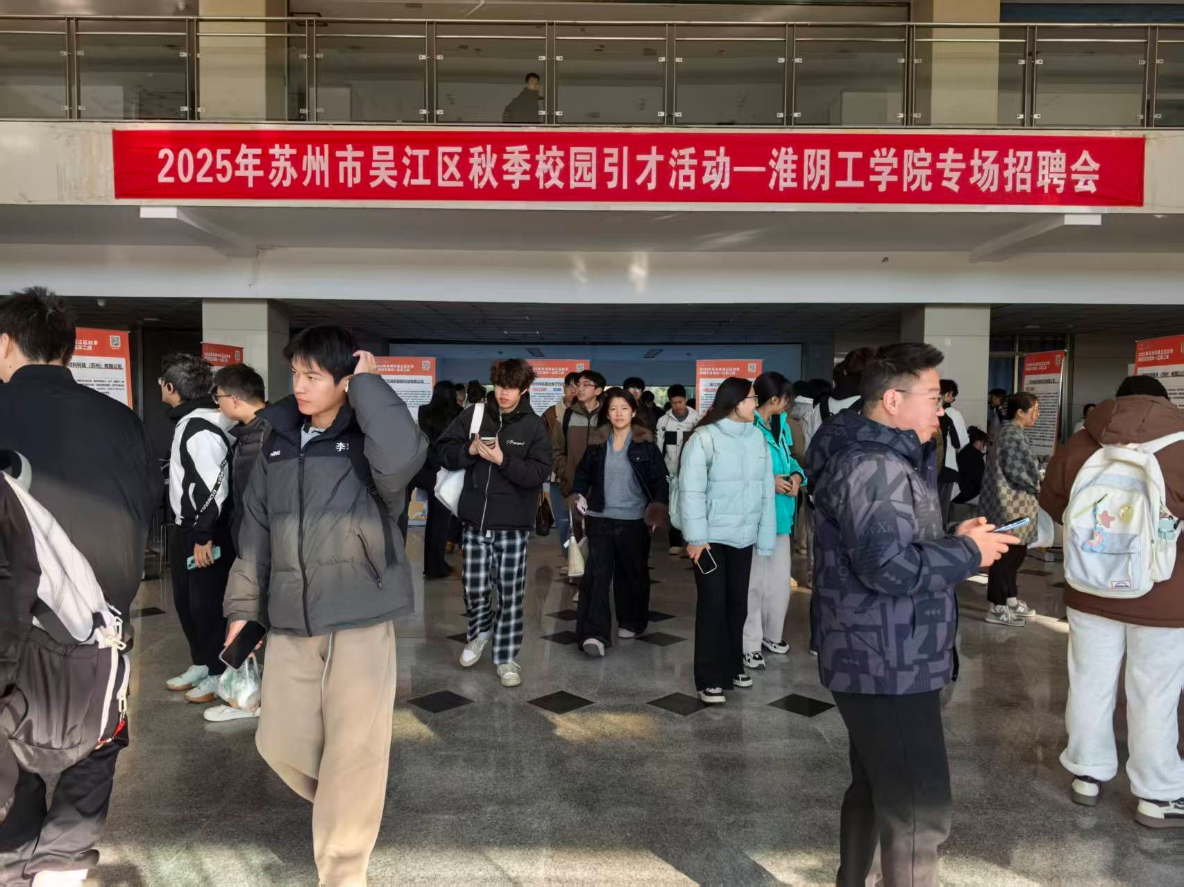 11月20日上午,我校2025年苏州市吴江区企业秋季专场招聘会在枚乘路校区逸夫楼二楼举行,校党委副书记秦家沛到现场调研指导工作。