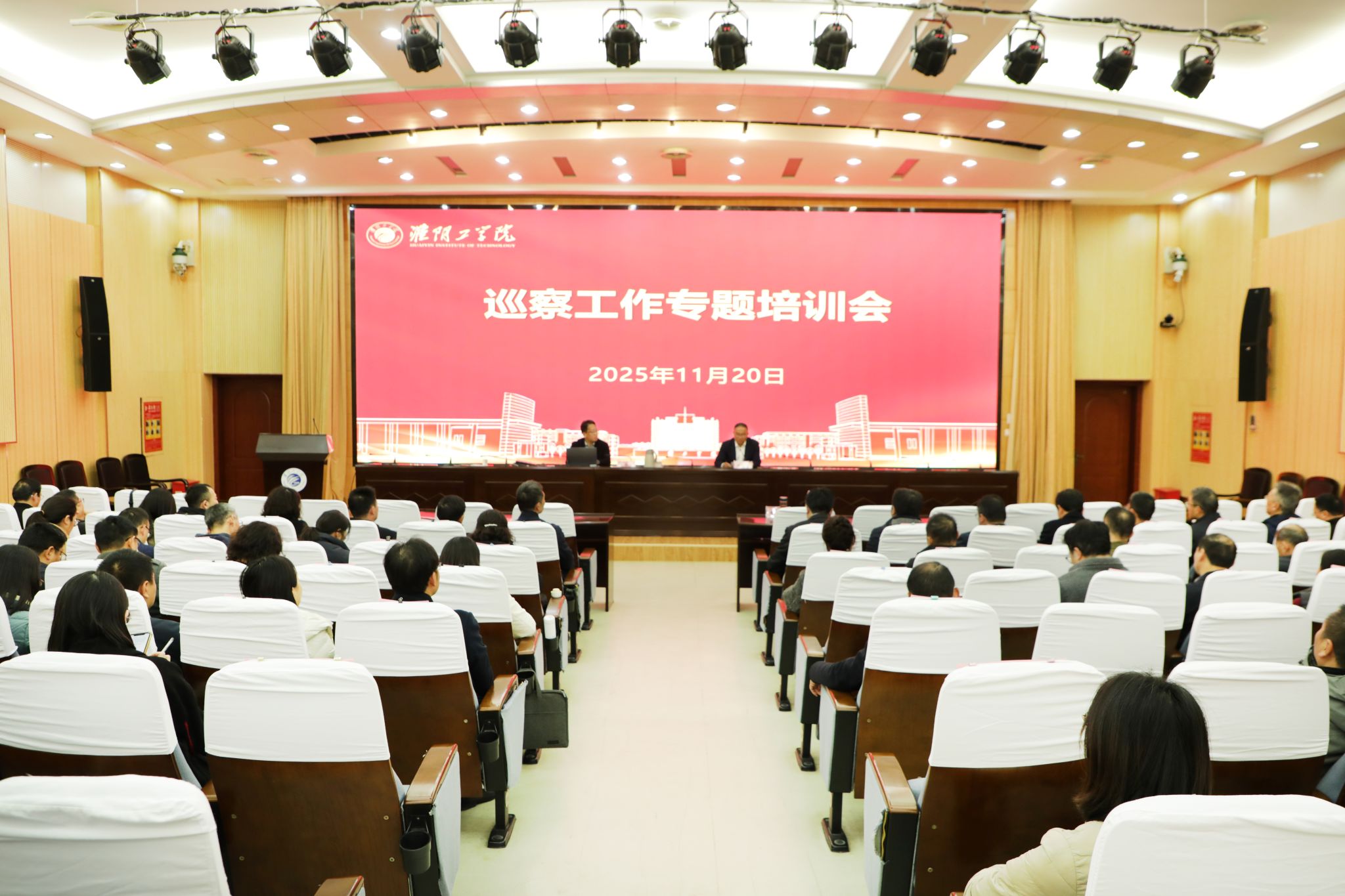 11月20日,我校在翔宇楼二楼报告厅举办巡察工作专题培训会。校党委巡察工作领导小组副组长、巡察办主任章益雷主持会议并讲话。淮安市委巡察办副主任吴承主受邀作专题培训。学校巡察人才库全体成员参加培训。