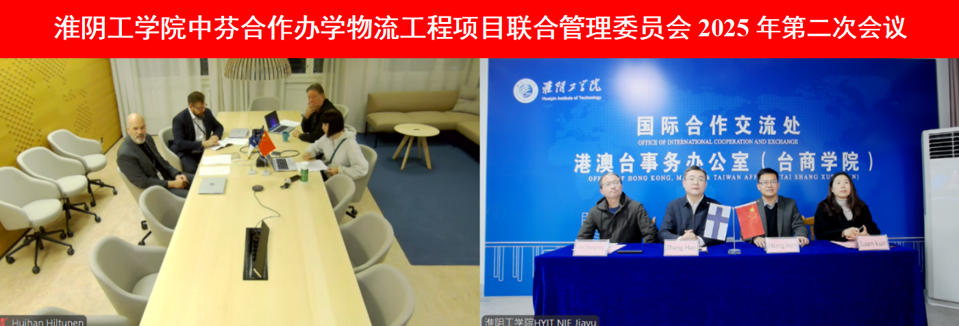 11月28日下午,我校与芬兰于韦斯屈莱应用科技大学通过远程视频方式召开中芬合作办学物流工程项目联合管理委员会会议。副校长张灏出席会议并致辞,芬兰于韦斯屈莱应用科技大学副校长米卡·卡尔亚莱宁及联合管理委员会成员参加会议。国际合作交流处处长洪坤主持会议。