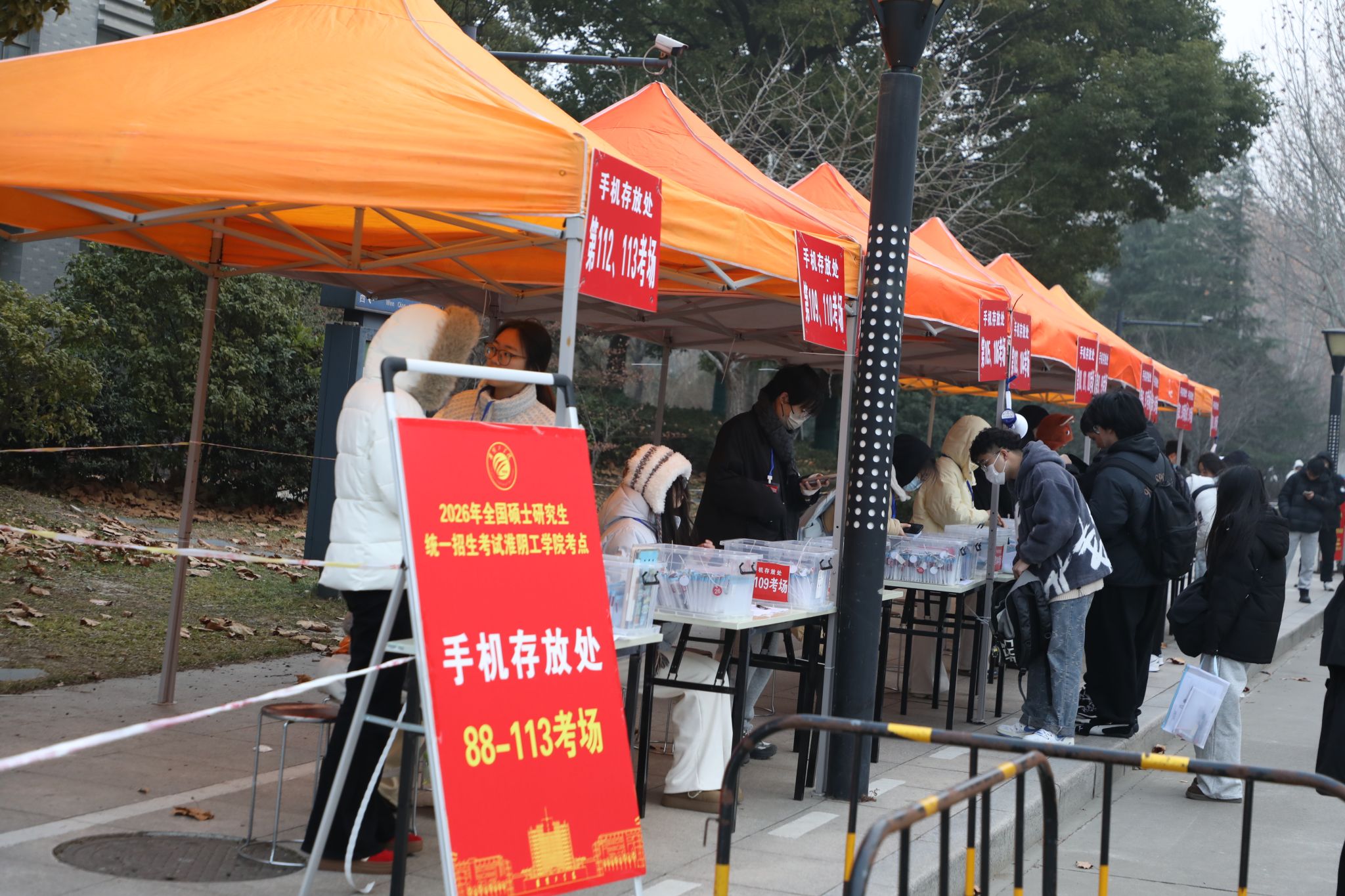 我校租赁了大巴车在不同校区之间通勤,方便考生到其它校区考试;开放食堂、报告厅、图书馆等场所作为考生休息室,并为考生提供免费茶水、姜汤等服务;选派100余名学生志愿者帮助考生保管手机等物品;协调公安部门加强校园周围交通管理和噪音治理,为考生营造了安全安静的考试环境。