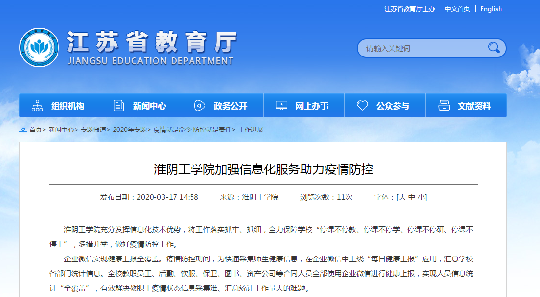 淮阴工学院充分发挥信息化技术优势,将工作落实抓牢、抓细,全力保障学校“停课不停教、停课不停学、停课不停研、停课不停工”,多措并举,做好疫情防控工作。