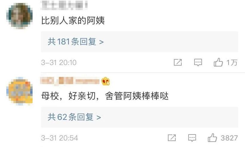 视频在网络引爆后,很多人看到如此暖心的宿管阿姨,在羡慕之余,也纷纷为戴娟点赞!