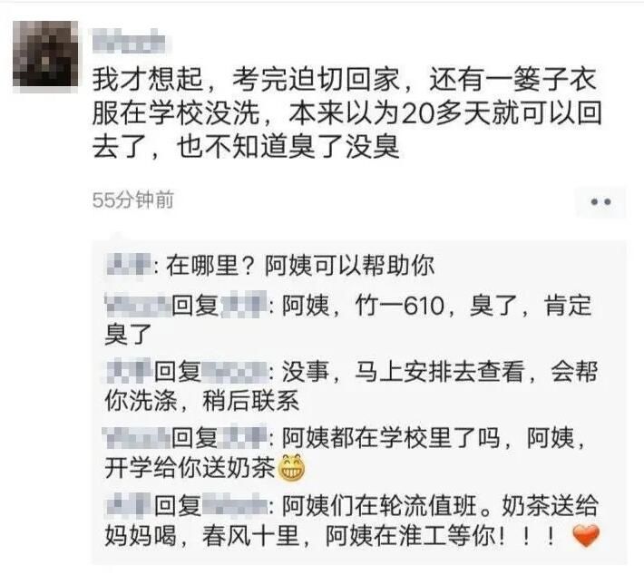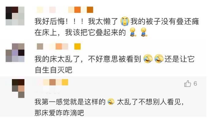 同时,也有一些小伙伴表示,好后悔自己放假离校时,床没有收拾干净,不好意思让阿姨帮忙晾被子……