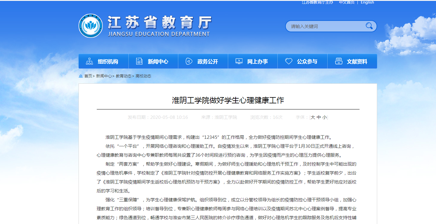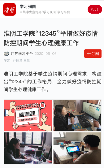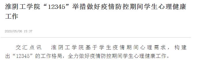 淮阴工学院基于学生疫情期间心理需求,构建出“12345”的工作格局,全力做好疫情防控期间学生心理健康工作。