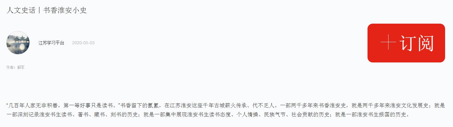 “几百年人家无非积善,第一等好事只是读书。”书香留下的氤氲,在江苏淮安这座千年古城薪火传承、代不乏人。一部两千多年来书香淮安史,就是两千多年来淮安文化发展史;就是一部深刻记录淮安书生读书、著书、藏书、刻书的历史;就是一部集中展现淮安书生读书态度、个人情操、民族气节、社会贡献的历史;就是一部淮安书生报国的历史。