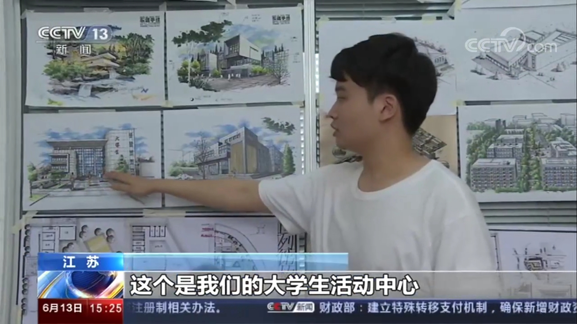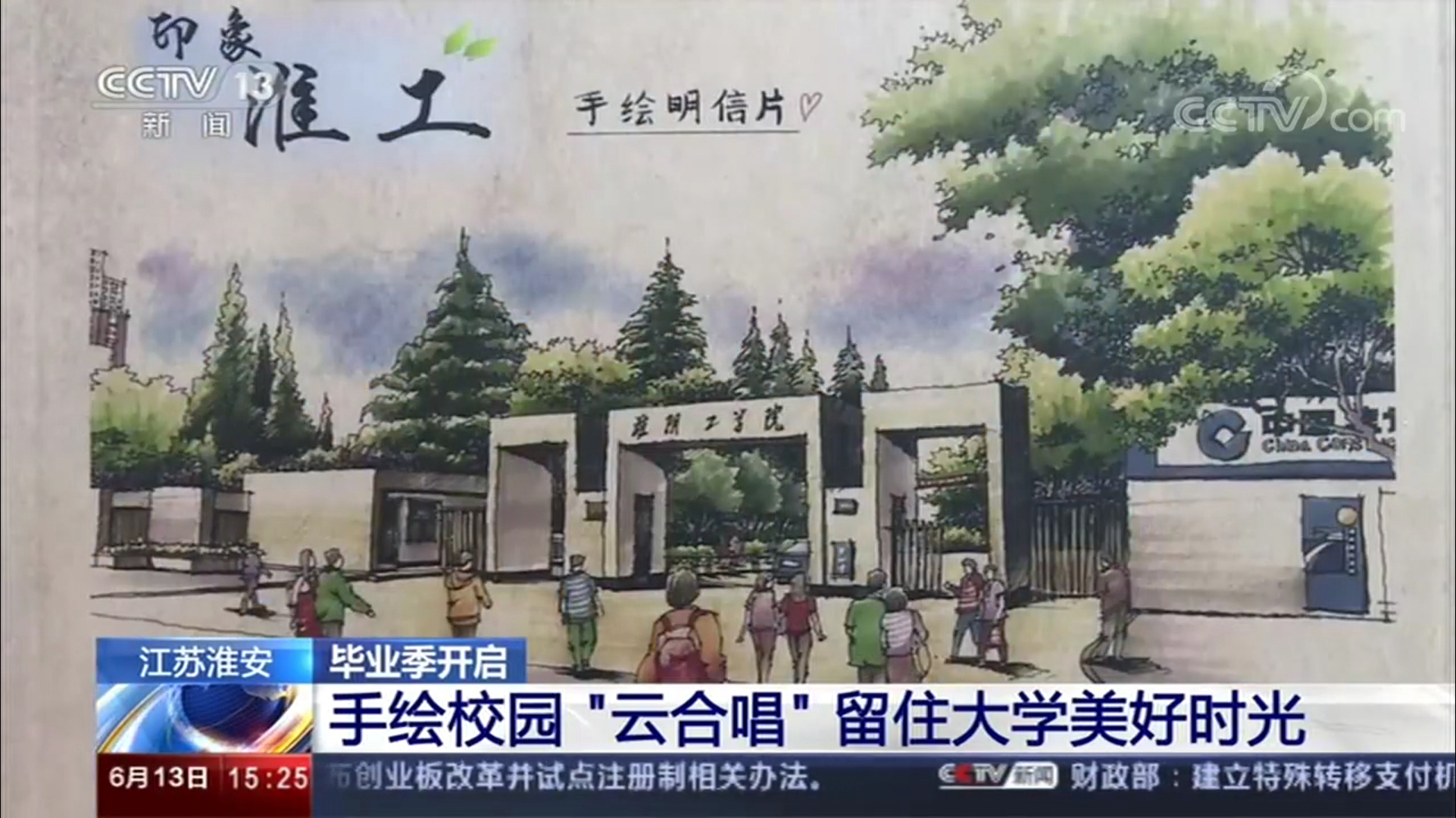 6月13日,中央电视台新闻直播间栏目以《毕业季开启 他们这样纪念大学生活》为题刊播我校建工学院毕业生韦奕钒手绘校园纪念青春。