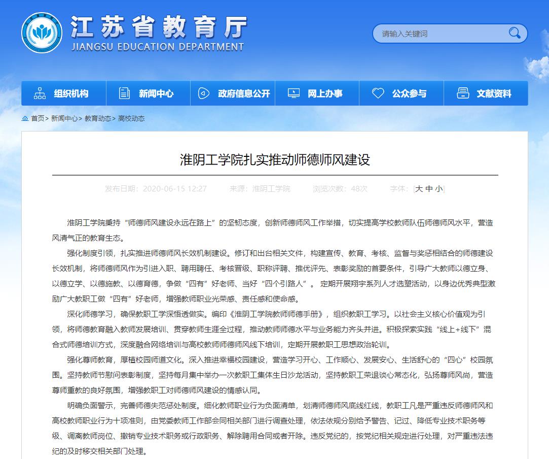 淮阴工学院秉持“师德师风建设永远在路上”的坚韧态度,创新师德师风工作举措,切实提高学校教师队伍师德师风水平,营造风清气正的教育生态。