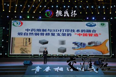 闭幕式上,南京中医药大学的《中药炮制与3D打印技术的融合——煅自然铜骨修复支架的“中国智造”》项目和中国矿业大学的《有韧无患——社区弹性应急咨询服务开拓者》项目2个获奖作品受邀进行路演展示。