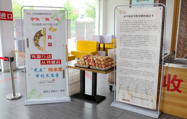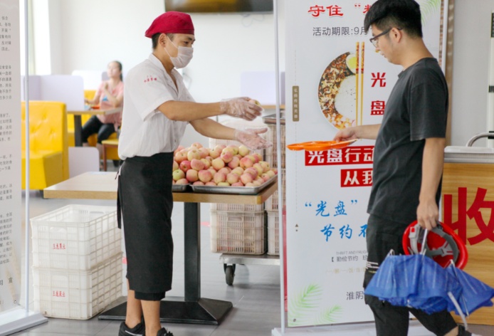淮阴工学院第五食堂二楼和第六食堂一楼采取鼓励措施,对做到光盘不浪费的师生赠送水果。“每天都能收到奖励‘光盘行动’的苹果,又脆又甜,妈妈再也不用担心我忘记吃水果啦。”第六食堂一楼的常客陆同学俏皮地说。六食堂一楼水果赠送处王辉师傅说:“对做到光盘不浪费的师生赠送水果,既倡导了‘厉行节约、反对浪费’的校园风尚,又满足了师生营养均衡、合理搭配的需求,很受师生欢迎。”