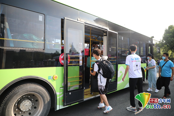 新生入校后搭乘校内摆渡车。受访者供图