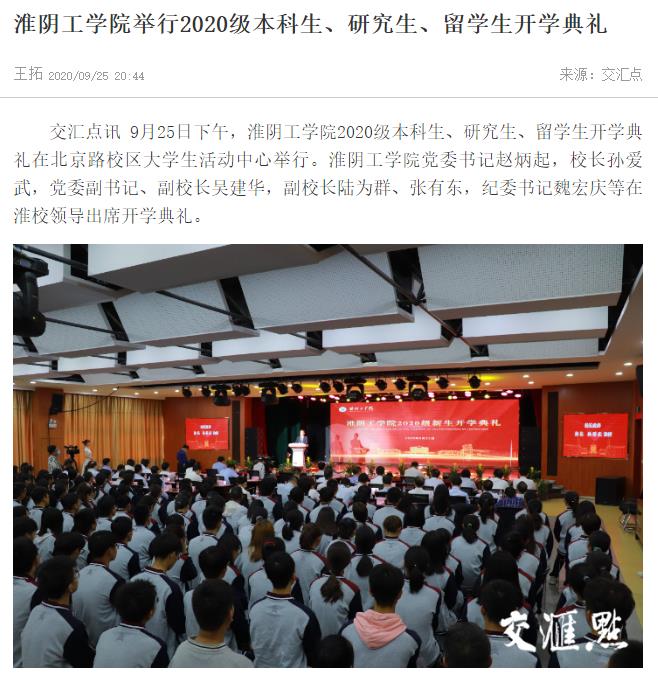 开学典礼共分为“淮工印象”“梦启淮工”两个篇章,在歌舞《淮工欢迎你》中拉开序幕。因疫情防控常态化工作需要,开学典礼采取线上线下的方式同步进行。