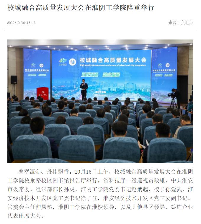 大会的顺利召开,为进一步加强校地互联,促进资源互通,深化校城融合,搭建合作平台,提升服务能力,主动融入服务地方高质量发展主战场提供了新动能和新机遇,为全力助推淮安市高质量发展贡献淮阴工学院的人才和智力资源。