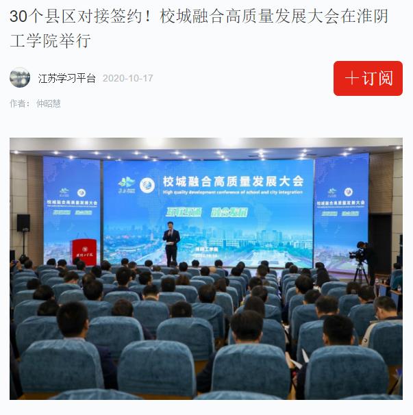 作为扎根周总理家乡的大学,淮阴工学院始终将服务淮安发展作为自己永恒的价值追求和使命担当,以贡献寻支持,以服务谋发展。大学因城市而兴,城市因大学而盛。当前,淮安正全力打造“绿色高地、枢纽新城”,奋力推进“美丽淮安、开放淮安、创新淮安、幸福淮安”建设,培育创新发展新动能。目前,淮工也正承载着全市人民的热切期盼,全力冲刺硕士授予单位和高水平应用型综合性淮安大学创建工作,全面提升学校综合实力和核心竞争力。淮阴工学院党委书记赵炳起指出,站在校城融合高质量发展的新起点上,淮阴工学院将始终将服务地方经济社会发展作为使命担当,积极探索实施创新驱动发展、校城深度融合的长效机制,切实把淮工的人才优势、科研优势转化为淮安的创新优势、产业优势、发展优势,为成功创建综合性淮安大学、助力淮安高质量发展作出淮工人应有的贡献。
