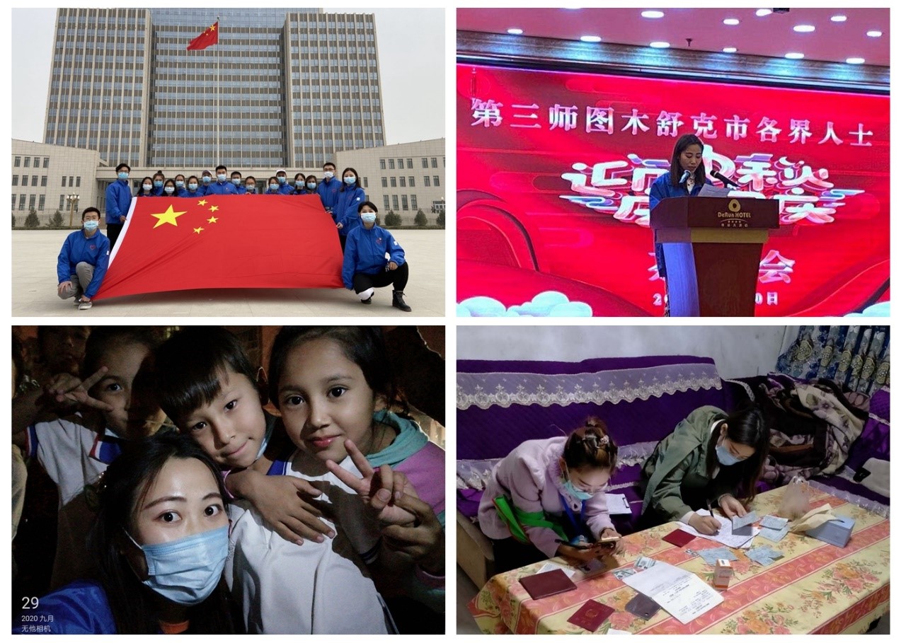 在图木舒克市兰典和其他赴疆志愿者们一同进行了军训和业务培训,通过体能上的训练和精神上的淬炼,让兰典快速适应了新的工作和生活环境。无论是“不忘初心、恪尽职守”的胡杨精神,还是“热爱祖国、无私奉献、艰苦奋斗、开拓进取”的兵团精神,每一场讲座报告,每一个奋斗故事都深深震撼和感染着她,这让兰典更加深刻的明白了:基层是一个可以磨练青年人意志、锻炼青年人本领的舞台,努力在基层工作中施展自己的专业知识和技能,才是真正有梦想、有活力、有前途的青年人。