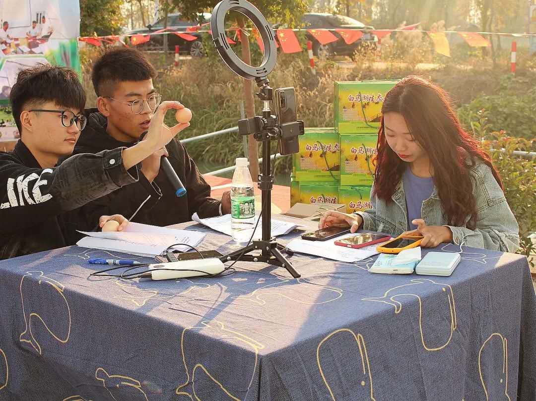 从下载APP软件,直播平台账号注册,开设线上商店,到商品上架等电商技能的学习,大学生们在操作层面上手把手教村民,他们以大闸蟹、白湖草鸡蛋、三江秀芡实等特色农产品为例,全面展示了直播的完整过程。生动别致的直播形式和妙趣横生的直播语言让当地村民大开眼界。同学们凭借丰富的直播带货知识高质量展示农产品特点,将个人的带货实践,化作一堂生动的社会实践课,助力乡村产业振兴。