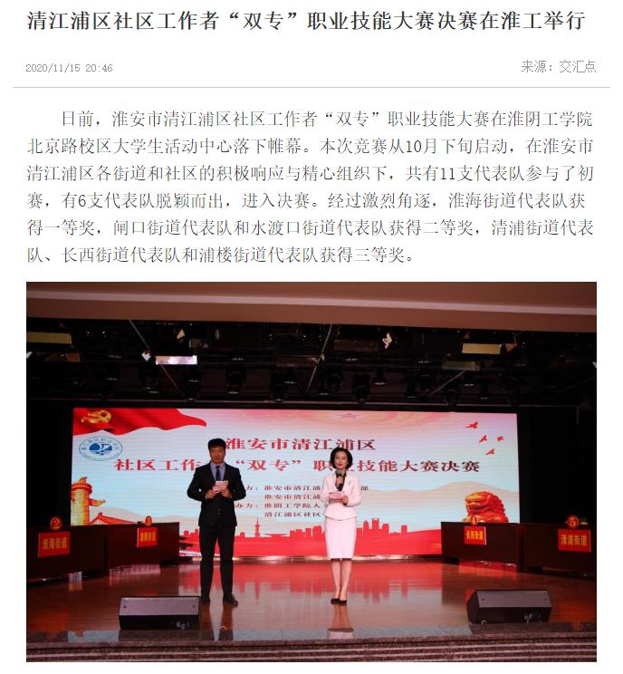 日前,淮安市清江浦区社区工作者“双专”职业技能大赛在淮阴工学院北京路校区大学生活动中心落下帷幕。本次竞赛从10月下旬启动,在淮安市清江浦区各街道和社区的积极响应与精心组织下,共有11支代表队参与了初赛,有6支代表队脱颖而出,进入决赛。经过激烈角逐,淮海街道代表队获得一等奖,闸口街道代表队和水渡口街道代表队获得二等奖,清浦街道代表队、长西街道代表队和浦楼街道代表队获得三等奖。