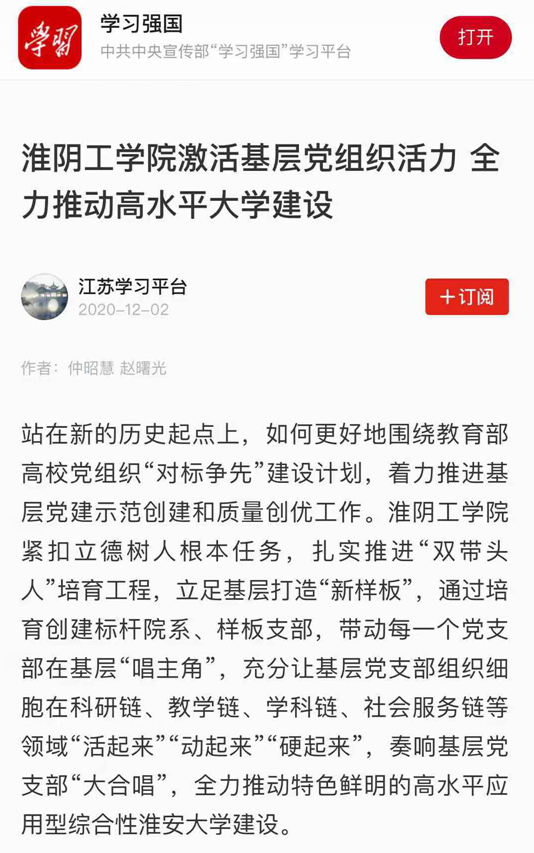 站在新的历史起点上,如何更好地围绕教育部高校党组织“对标争先”建设计划,着力推进基层党建示范创建和质量创优工作,淮阴工学院紧扣立德树人根本任务,扎实推进“双带头人”培育工程,立足基层打造“新样板”,通过培育创建标杆院系、样板支部,带动每一个党支部在基层“唱主角”,充分让基层党支部组织细胞在科研链、教学链、学科链、社会服务链等领域“活起来”“动起来”“硬起来”,奏响基层党支部“大合唱”,全力推动特色鲜明的高水平应用型综合性淮安大学建设。