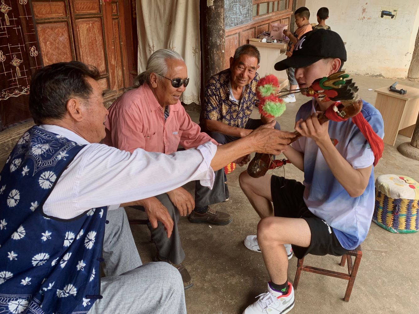 田埂调传人正在教授志愿者沙旋