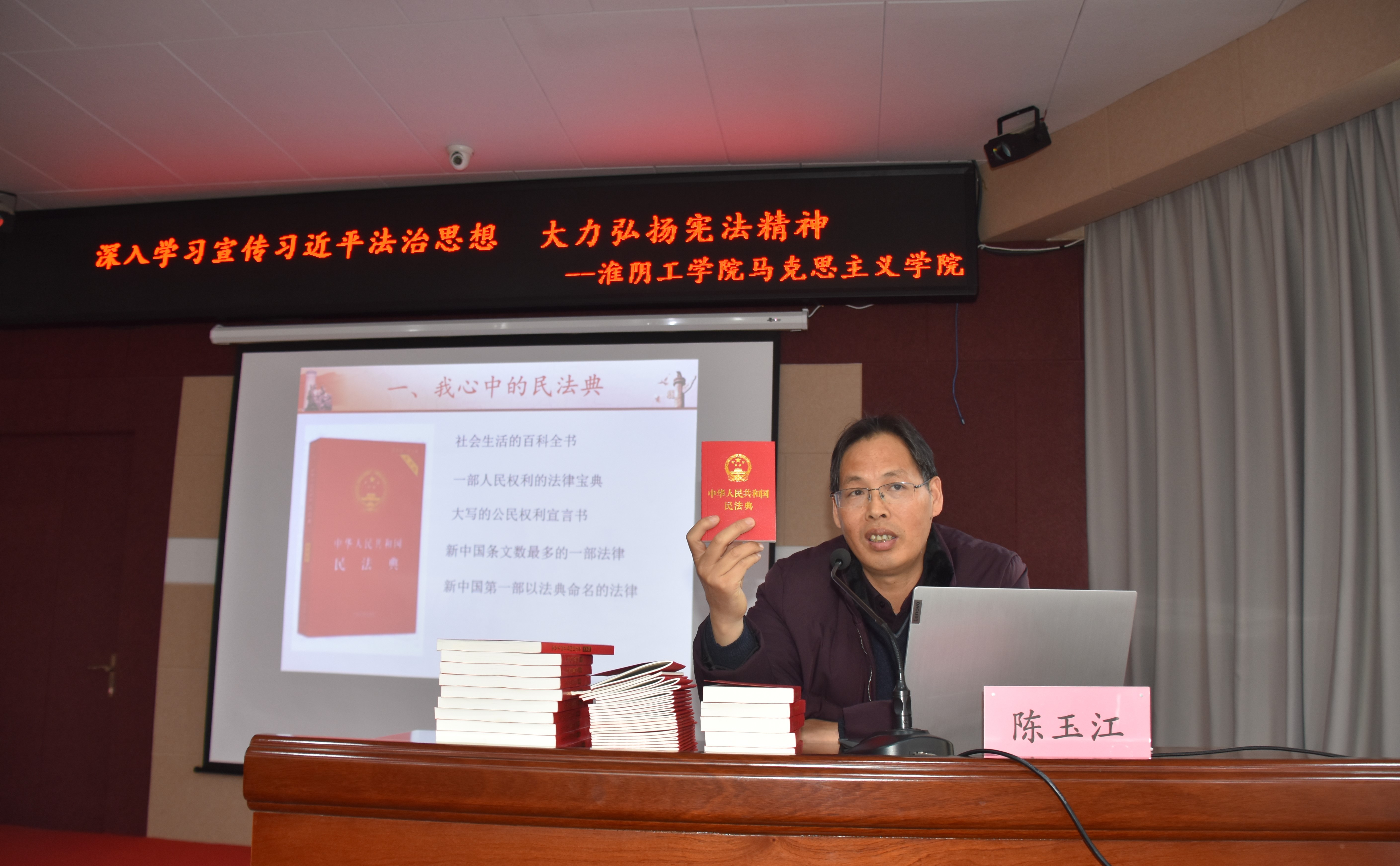 家住滨河社区的老党员杨志珠早早来到了活动现场,和其他60多位居民一起,聆听了由淮阴工学院马克思主义学院教授陈玉江带来的《民法典“典”亮百姓生活》专题讲座。《中华人民共和国民法典》被称为“社会生活的百科全书”,是新中国第一部以法典命名的法律,将于2021年1月1日起施行。在此次讲座中,陈教授就与百姓生活息息相关的民法典内容做了详细解读,还从法律上详细解答了居民们普遍关心的房产纠纷、离婚、交通事故、意外伤害、民间借贷等问题,受到了社区居民的热烈欢迎。