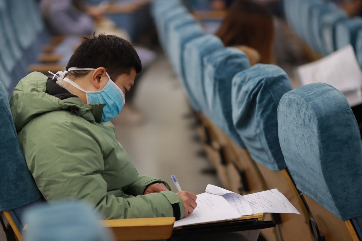 除了保障考生出行用餐,淮阴工学院细心考虑到中午休息时间有限,开放图书馆、报告厅等,方便考生就地休息充电补充“战斗力”, 还提供热水、纸巾等,并安排志愿者随时关注考生需求。“外面寒风瑟瑟,室内温暖如春。中午在学校提供的休息室休息一下,充电完毕继续‘战斗’!”小憩一会儿后继续复习的贾同学说。