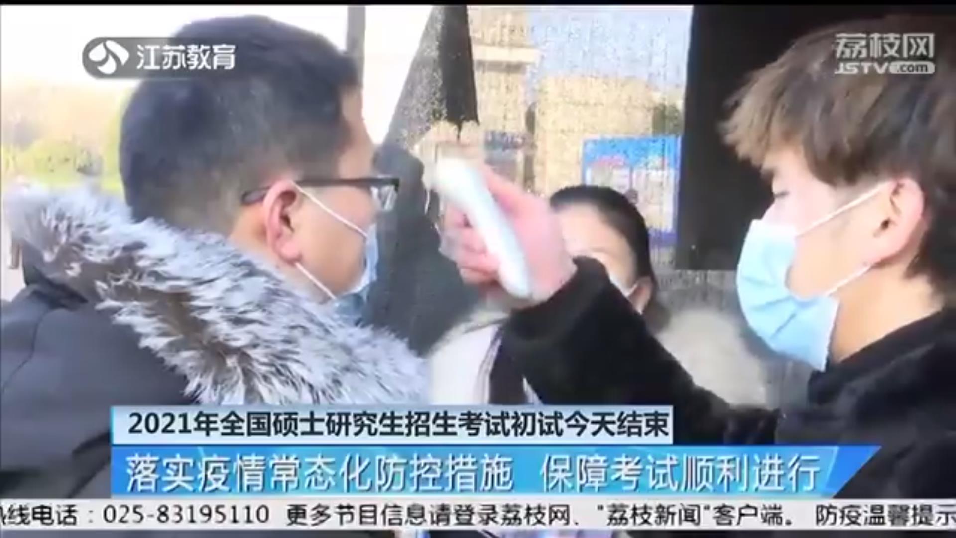 12月28日,2021年全国硕士研究生招生考试初试今天全部结束。我省共设117个考点,8968个考场,共有26.3万名考生报名参加考试,较去年增长5.6%。记者在淮阴工学院枚乘路校区入口处看到,考生排队扫描苏康码,接受体温检测,在核验通过后,有序进入考场。