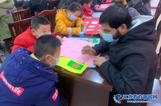 留学生们还准备了手工与绘画,和留守儿童们分享各自国家的文化,为留守儿童打开了一扇“看世界”的窗户,还送上了新春礼包表达关心与爱护,传递温暖与爱心。“这是我的新朋友!”留学生本杰明激动地向带队老师介绍。