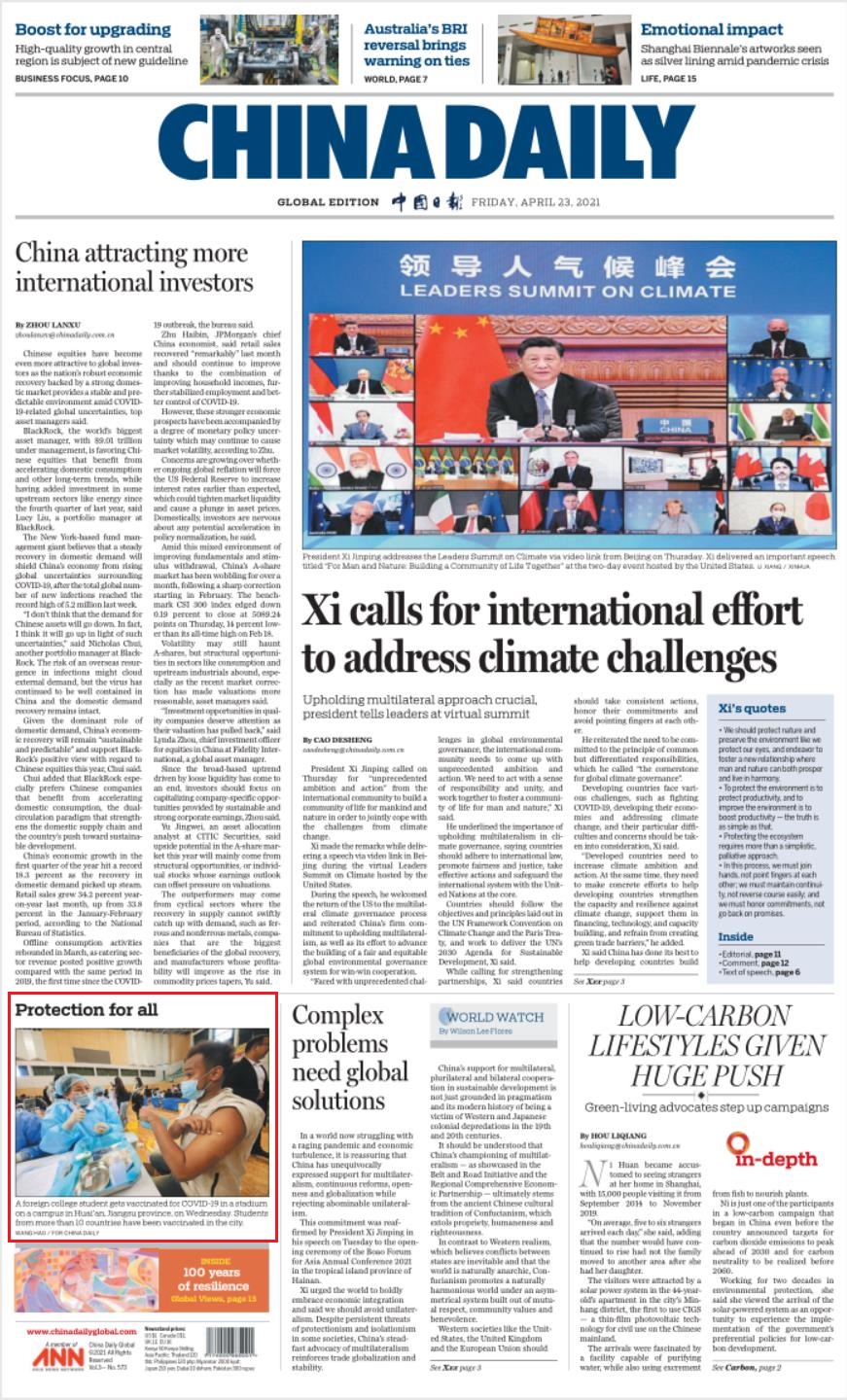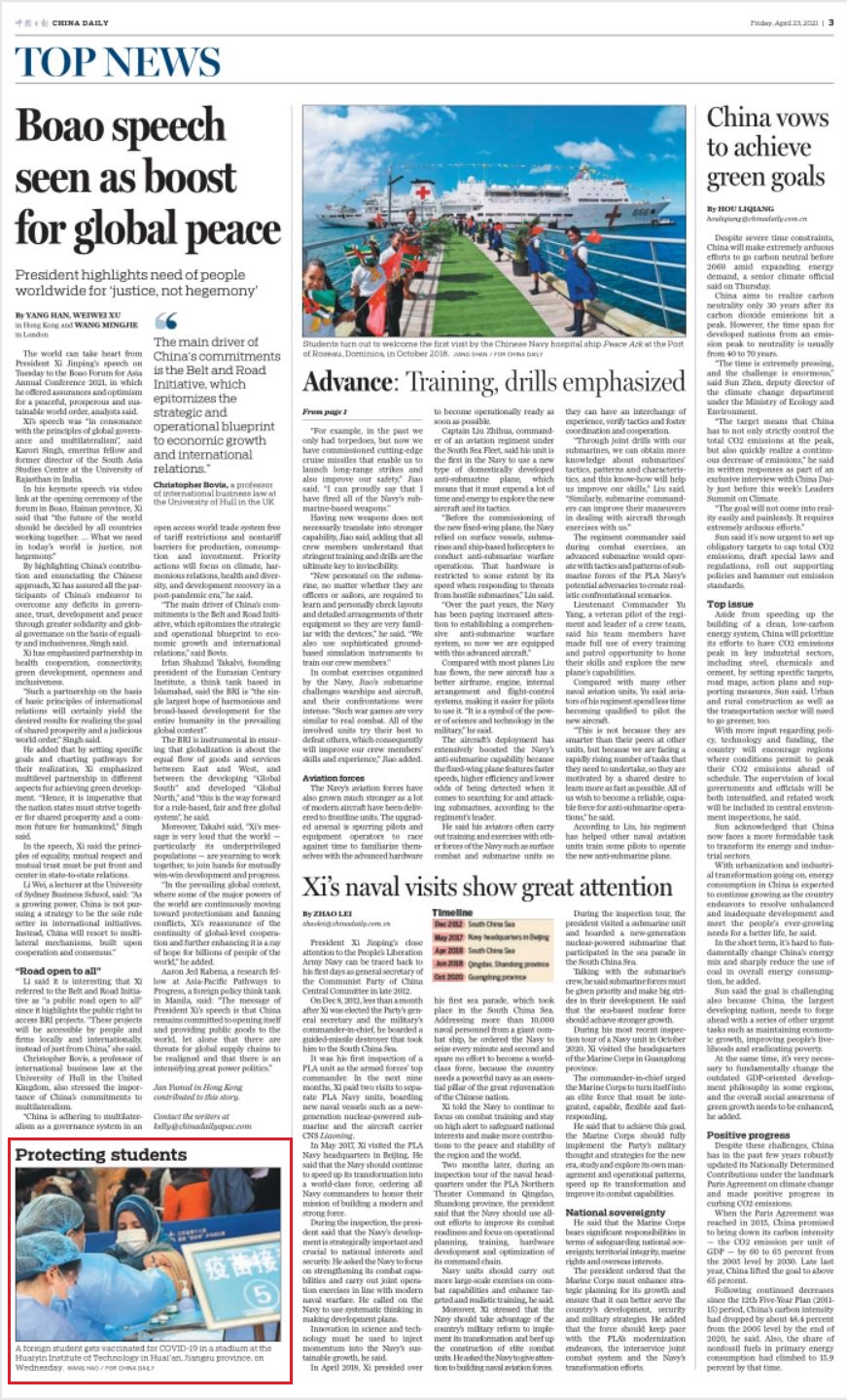 4月21日,我校为外籍教师和留学生接种新冠疫苗,获《中国日报》关注,头版报道。