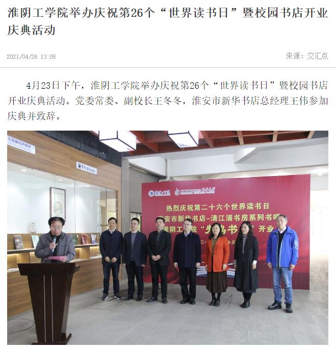 4月23日下午,淮阴工学院举办庆祝第26个“世界读书日”暨校园书店开业庆典活动。党委常委、副校长王冬冬,淮安市新华书店总经理王伟参加庆典并致辞。