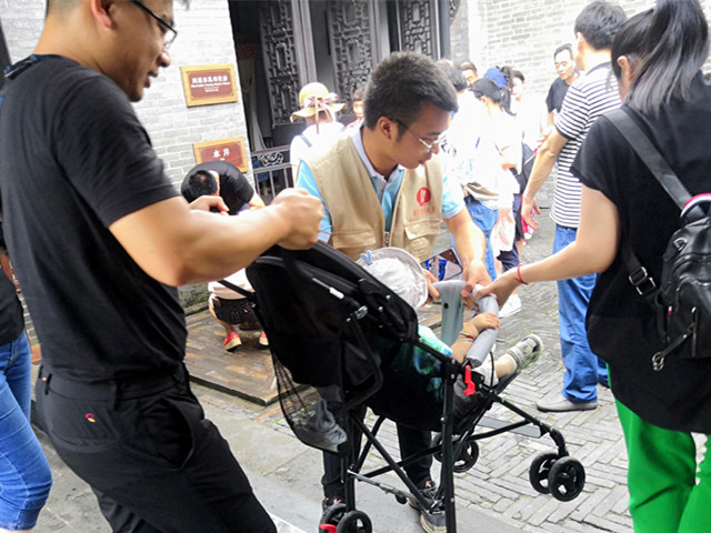 图1 “小蜜蜂”志愿者帮助携带儿童的游客