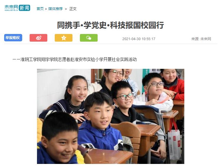 以“同携手·学党史·科技报国校园行”为主题,4月29日下午,淮阴工学院翔宇学院“周恩来班”志愿者孙书浩、张益民、秦齐和朱诗雯等四名同学走进淮安市实验小学,现场为五年级13班的小同学们上了一堂生动的党史教育课。