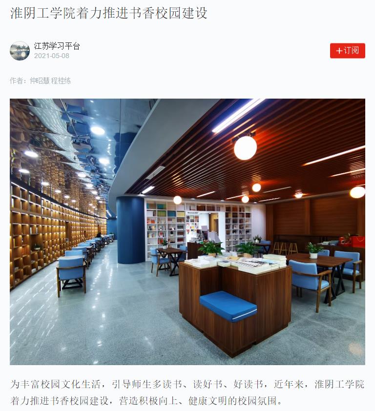 为丰富校园文化生活,引导师生多读书、读好书、好读书,近年来,淮阴工学院着力推进书香校园建设,营造积极向上、健康文明的校园氛围。