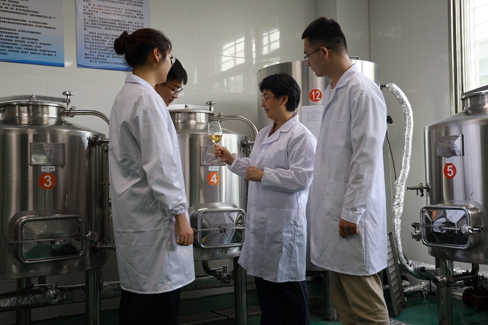 看着大批桃子被浪费,从小在农村长大的陈晓明感觉“特别心疼”。“要用专业改变现状,帮农民致富。”于是她向企业负责人提出,将这些不达鲜食标准的桃子酿制果酒。在水蜜桃果酒酿制过程中,陈晓明团队发现水蜜桃果酒的口味偏酸、色泽不稳定,蒸馏酒中的甲醇含量易偏高。为此,团队针对这些问题,持续开展技术攻关,经过5年多的科学实验探索,最终形成了自己的果酒系列——水蜜桃果酒、水蜜桃蒸馏酒和白兰地。
