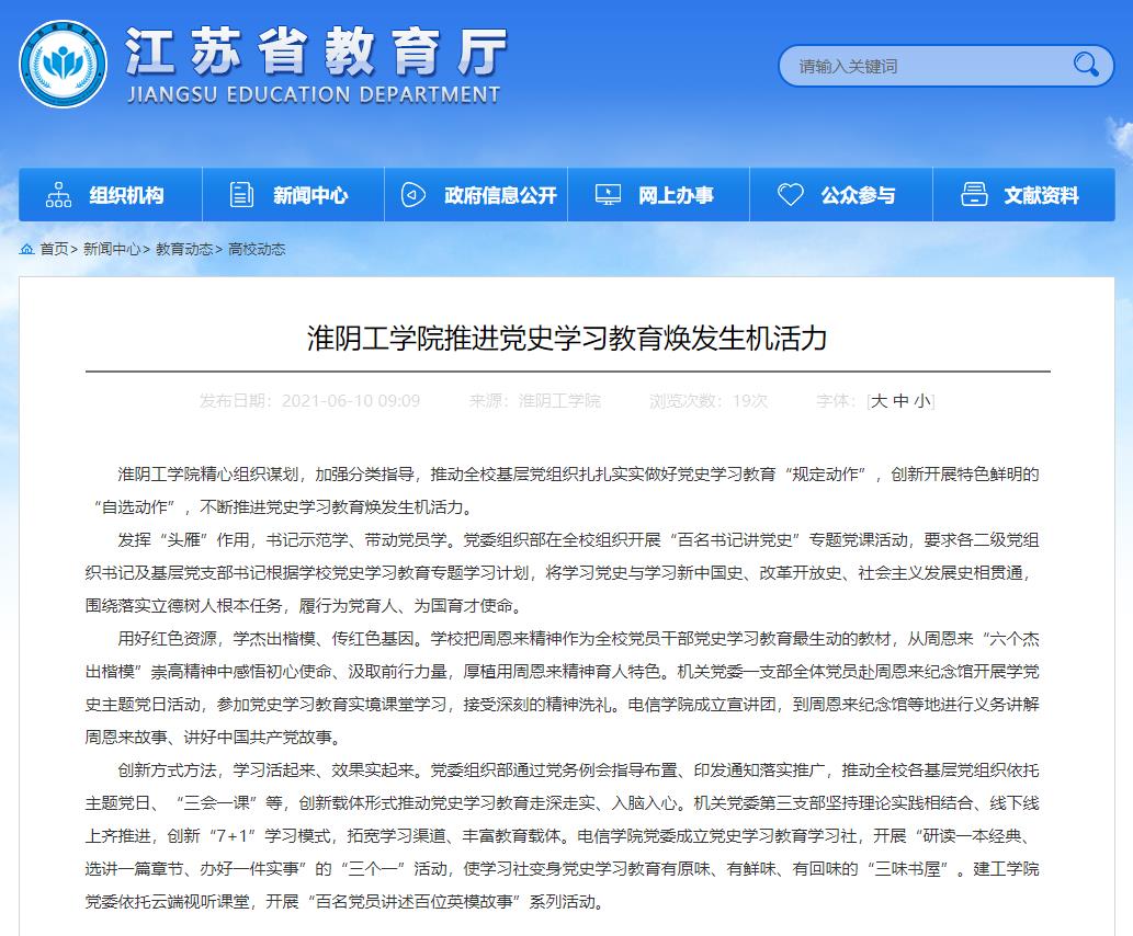淮阴工学院精心组织谋划,加强分类指导,推动全校基层党组织扎扎实实做好党史学习教育“规定动作”,创新开展特色鲜明的“自选动作”,不断推进党史学习教育焕发生机活力。