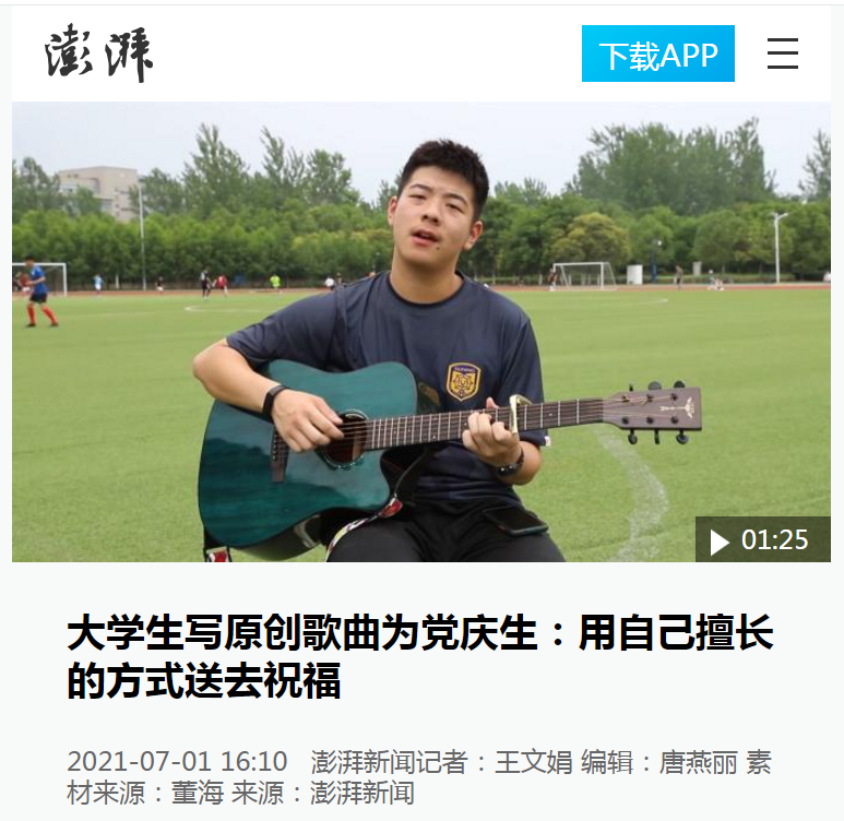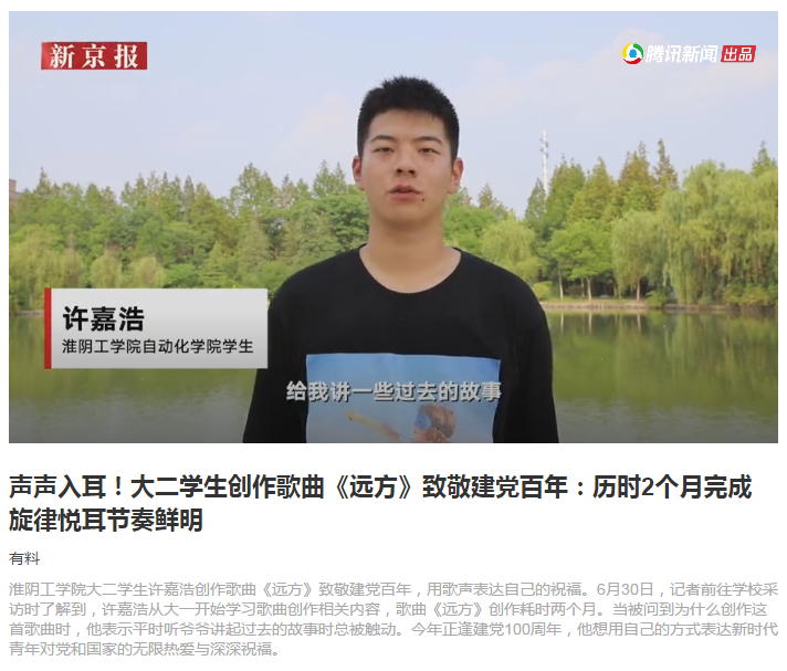 6月30日,江苏淮安。淮阴工学院大二学生许嘉浩创作歌曲《远方》,他说把建党百年的光辉历程创作成了歌词,是送给建党100周年的礼物,想用自己擅长的方式为党送去祝福。