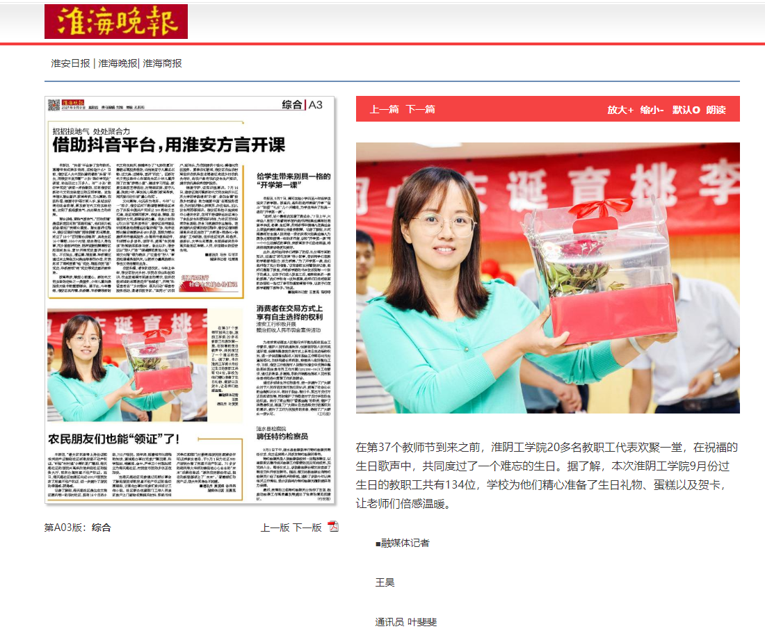 在第37个教师节到来之前,淮阴工学院20多名教职工代表欢聚一堂,在祝福的生日歌声中,共同度过了一个难忘的生日。据了解,本次淮阴工学院9月份过生日的教职工共有134位,学校为他们精心准备了生日礼物、蛋糕以及贺卡,让老师们倍感温暖。